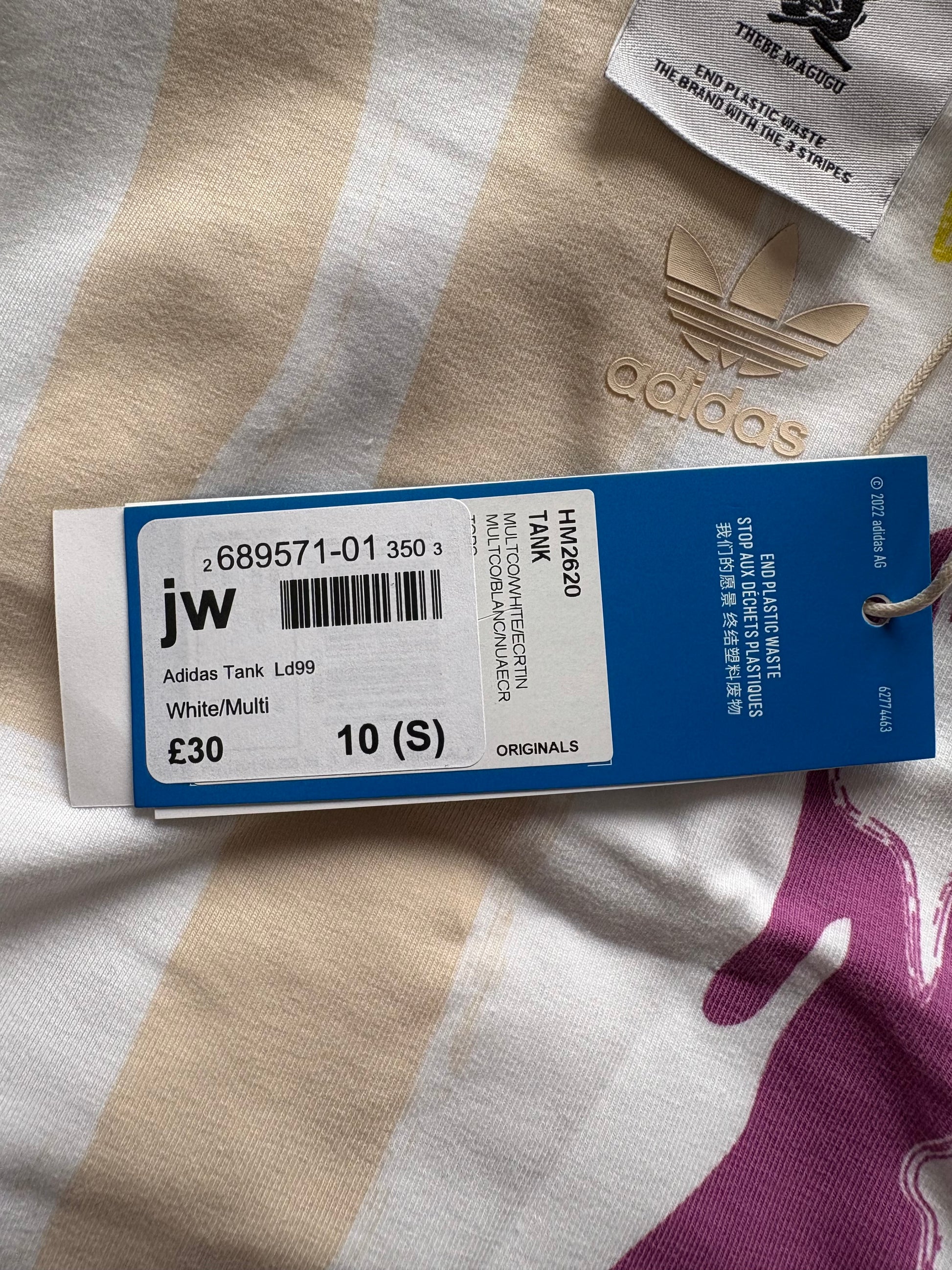 Adidas Originals sleeveless cropped tank Colour White Multi Size 10