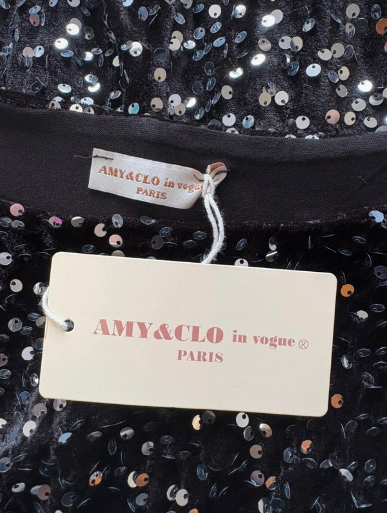 Amy & Clo in Vogue Long Sleeve Velvet Sequin Dress Colour Black One Size 10-18