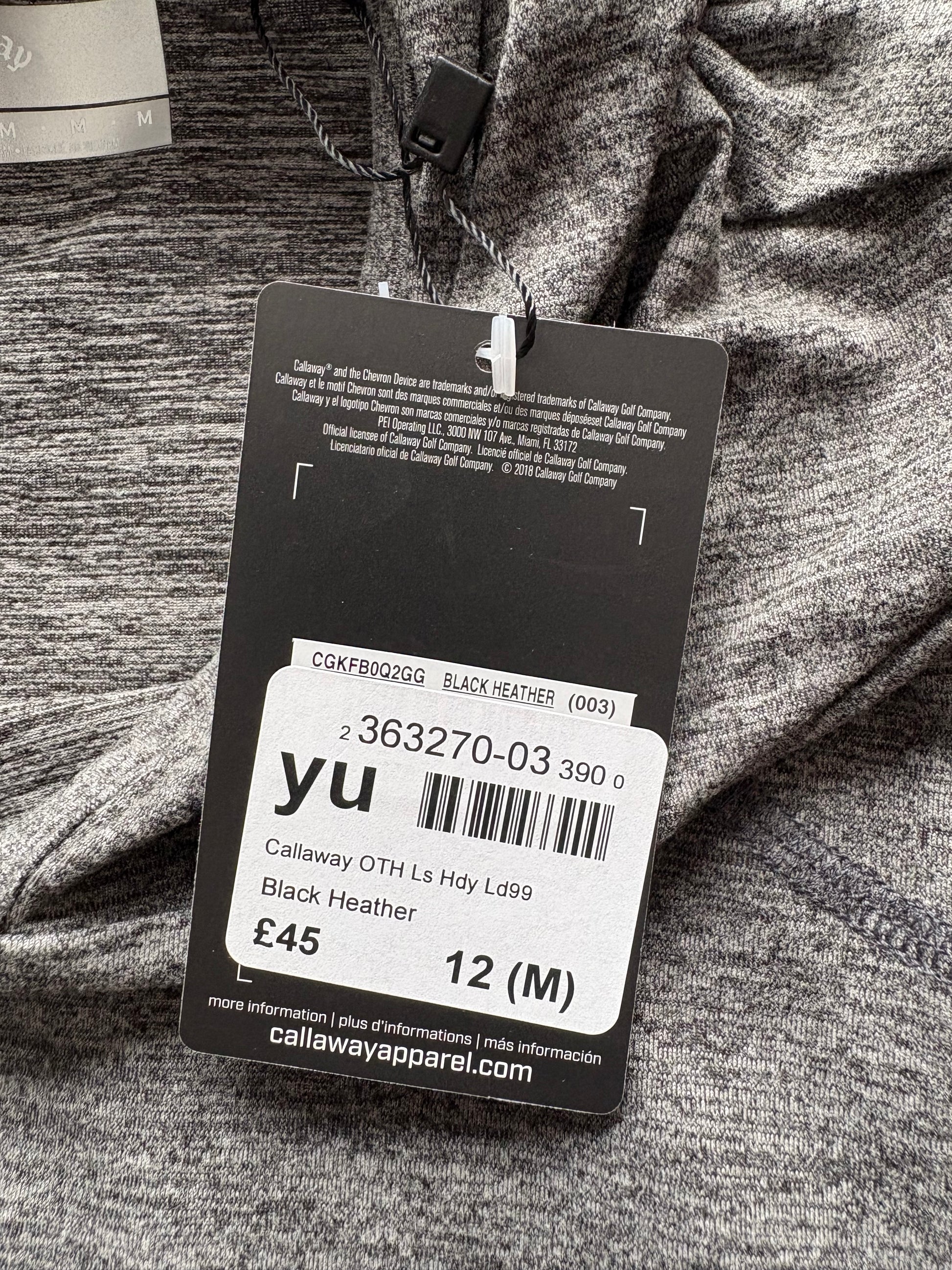 Callaway OTH Long Sleeve Hooded Top Colour Black Heather Size M