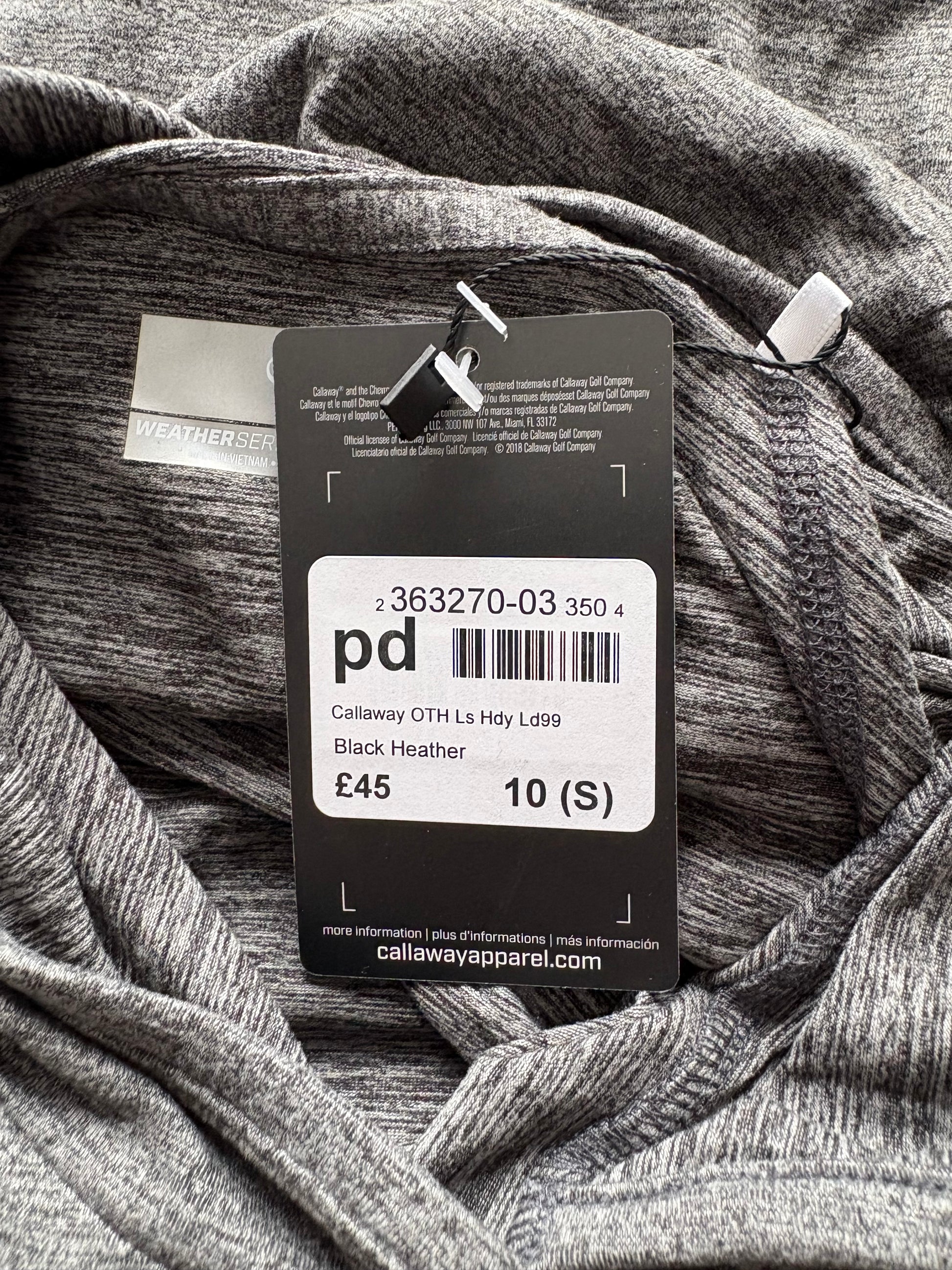Callaway OTH Long Sleeve Hooded Top Colour Black Heather Size S