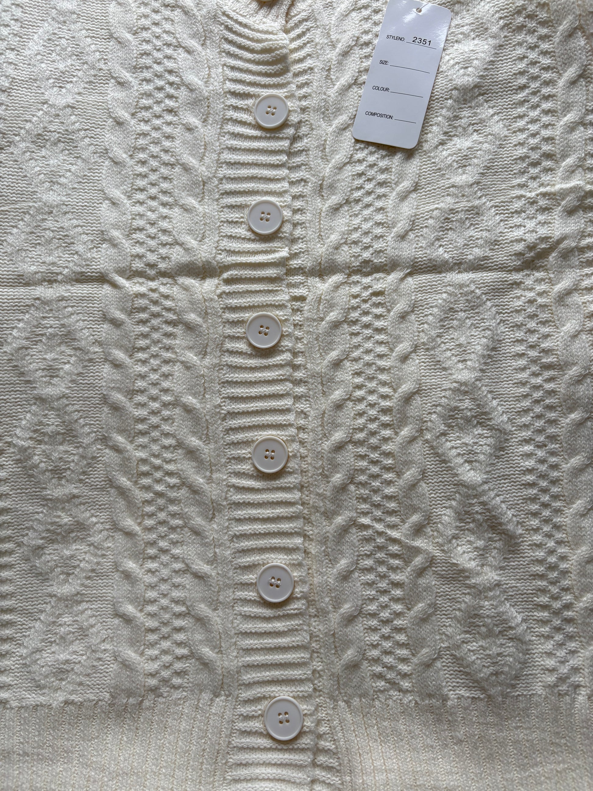 Wrap yourself in comfort and chic style with this cream knitted lounge set. Featuring a soft cable-knit button cardigan paired with relaxed wide-leg trousers, this co-ord brings a timeless, cosy feel while keeping you effortlessly polished. The cardigan's classic button-down design adds a touch of sophistication, while the matching trousers with a comfortable elasticated waist ensure easy all-day wear.