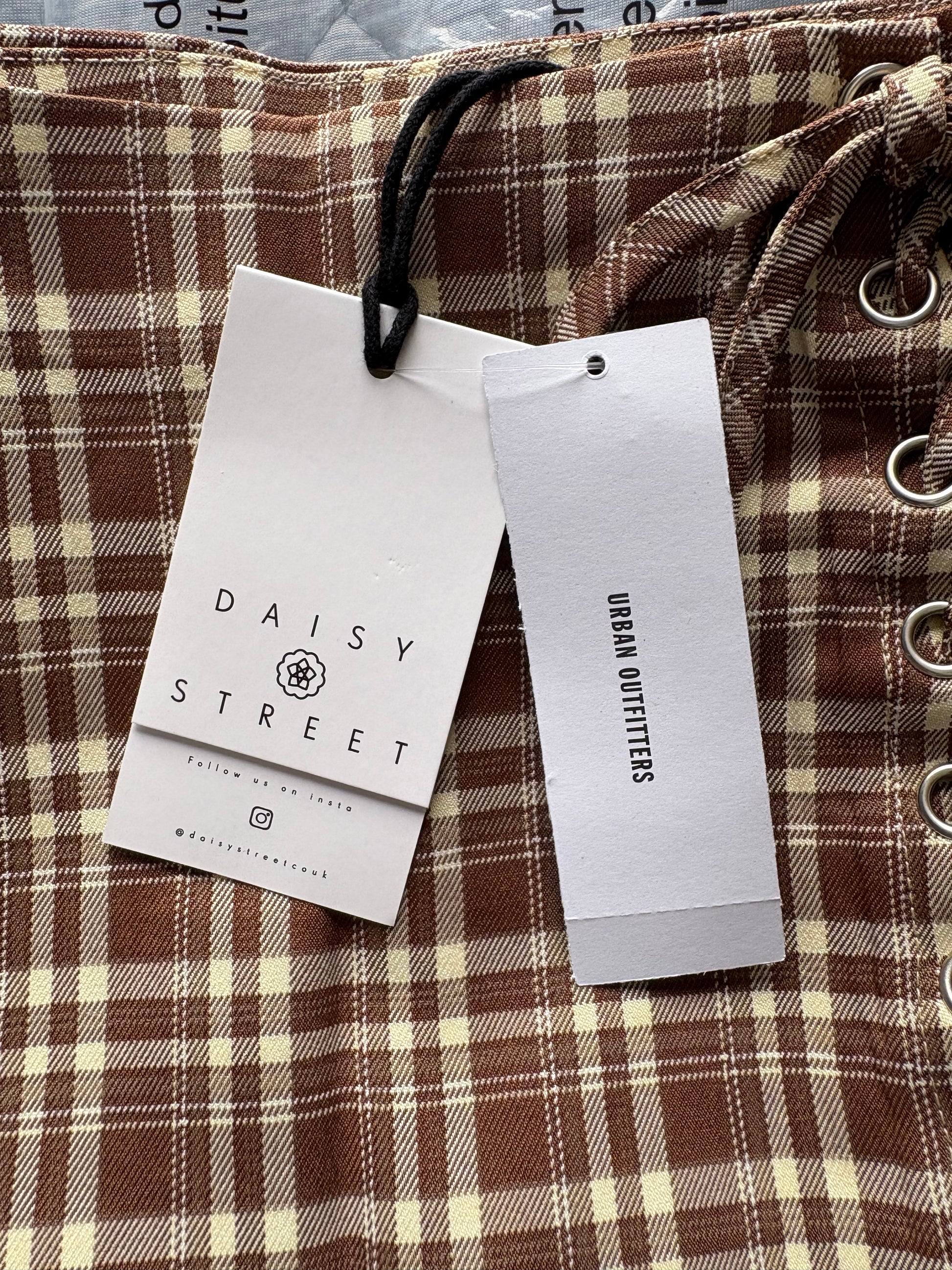 Daisy Street Lace Up Mini Skirt Colour Brown/ Cream Size 8