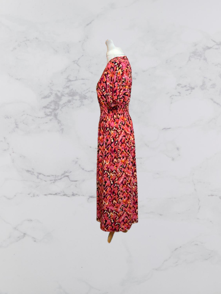 Evelin Short Sleeve Midi Dress Colour Red Multi Size XL/XXL One Size 8-16