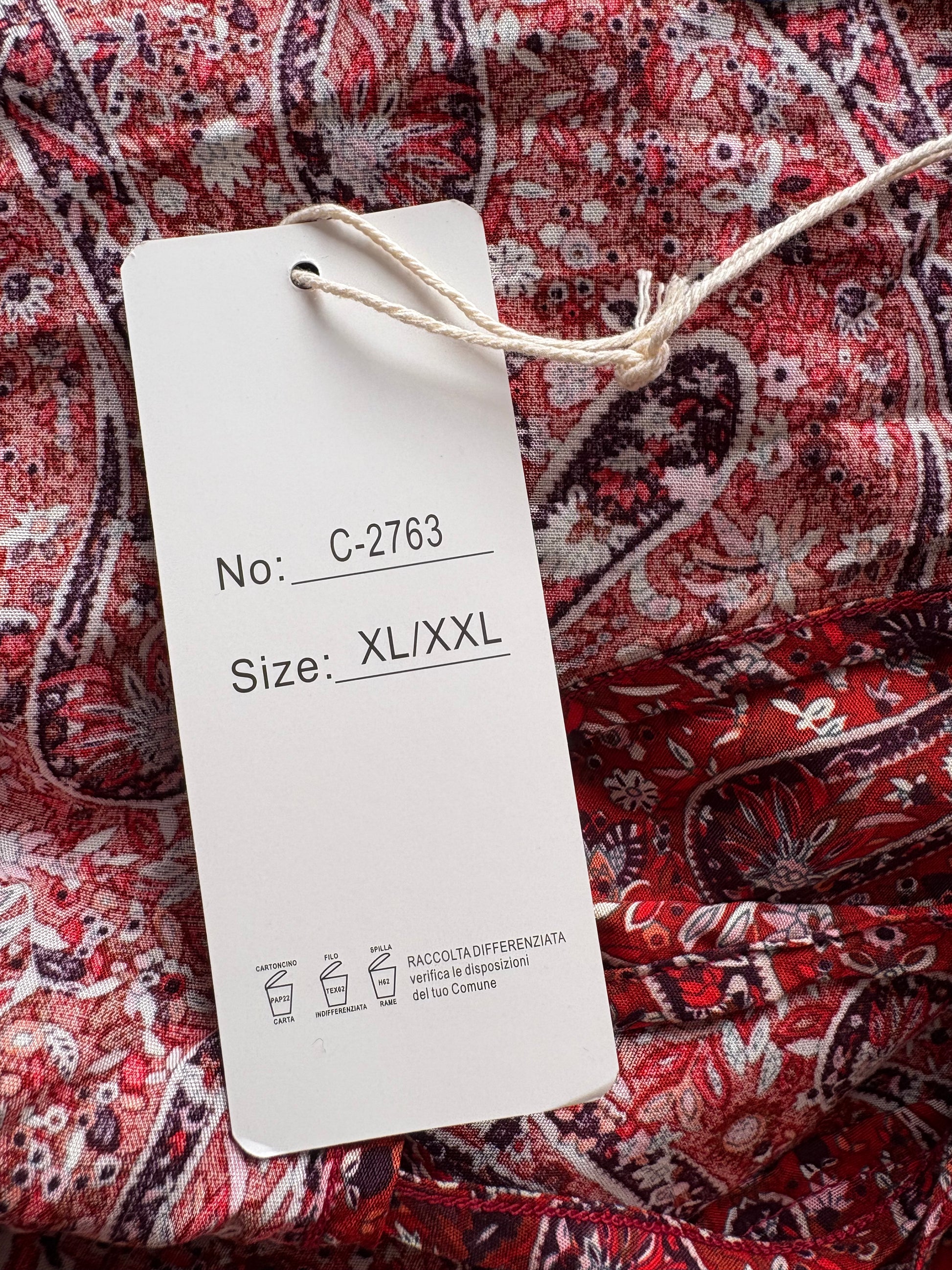 Evelyn Ruched Shoulder Sleeveless Midi Dress Colour Red Multi Size XL/XXL One Size 8-16