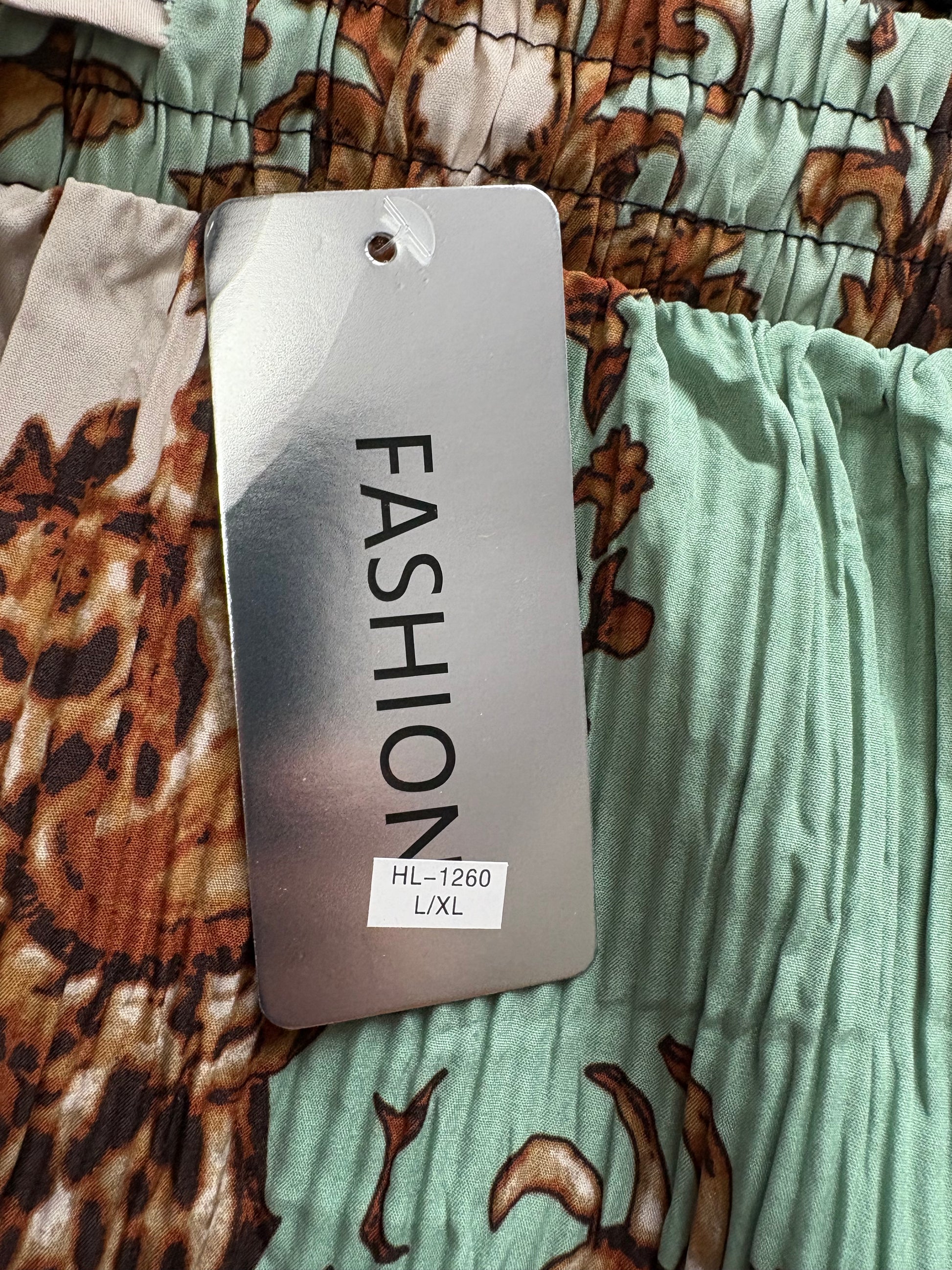 Fashion wide leg crinkle trousers Colour Green/ brown Size L/XL