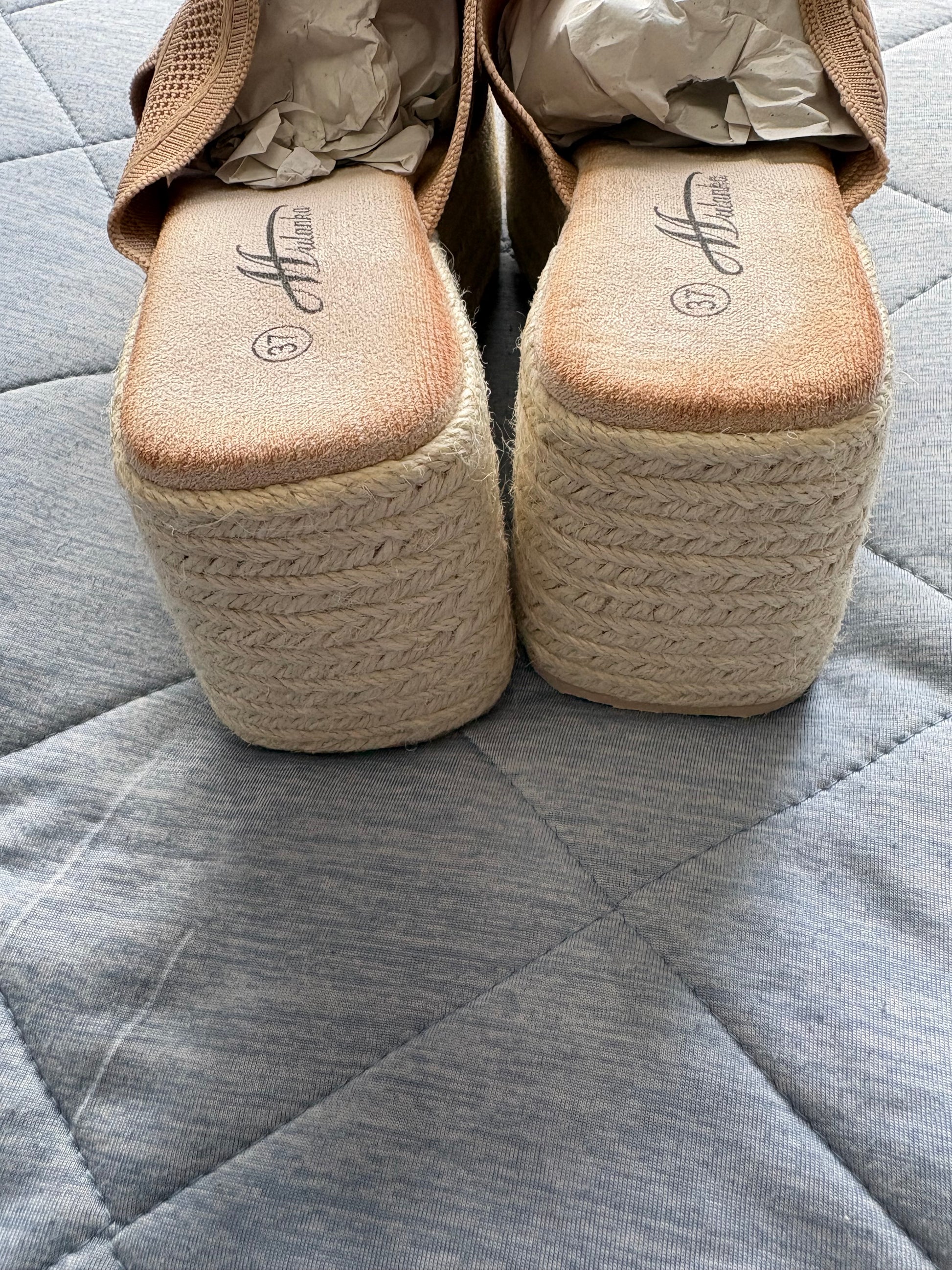 Mulanka Wedge Sandals Colour Khaki Size 37 UK Size 4