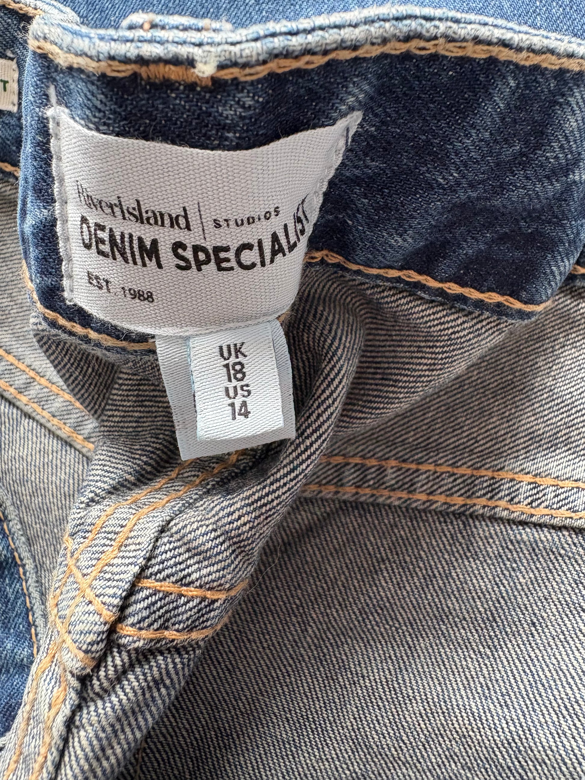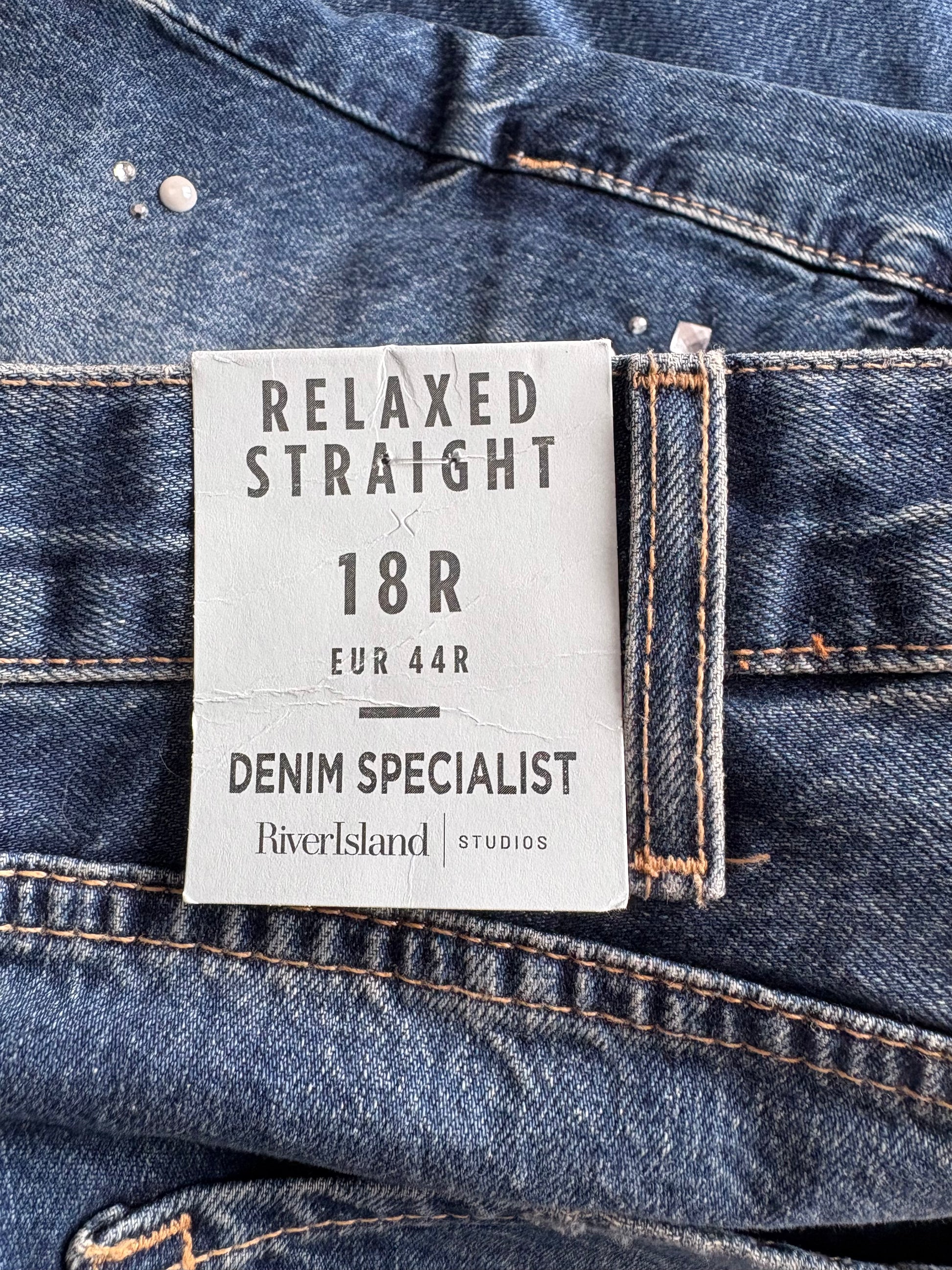 River Island Relaxed Straight Embellished Jeans Colour Medium Denim Size 18 R