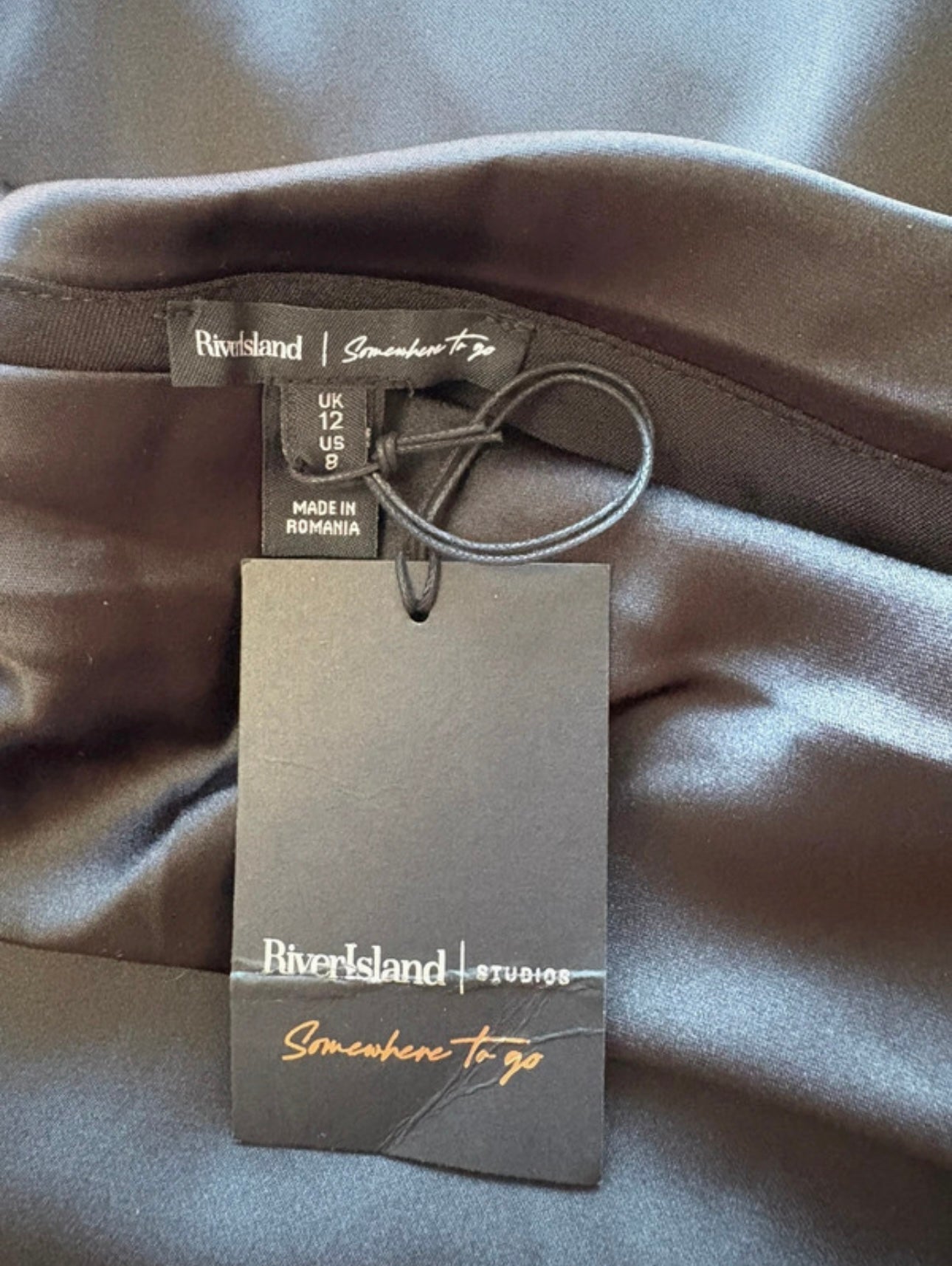 River Island Signature To Go Satin Off The Shoulder Top Colour Black Size 12