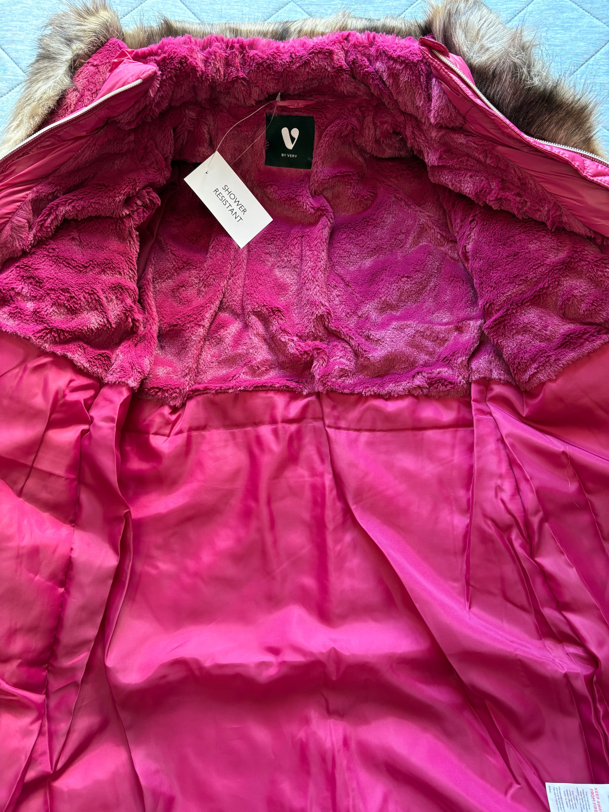 V by Very Girls Pearlized Hooded Half Fur lined parka jacket Size 13 Years