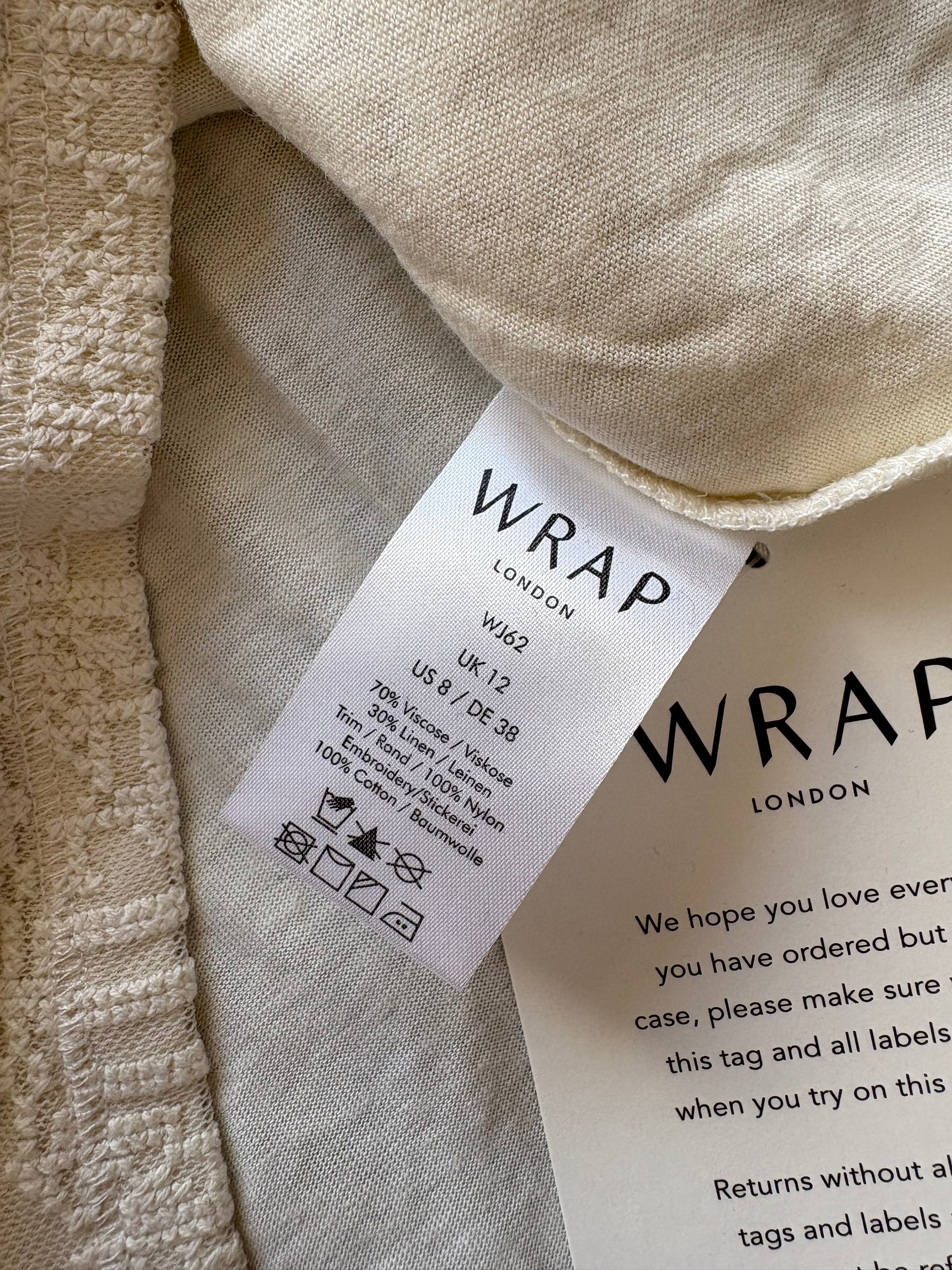 Wrap London Embroidered Long Sleeve Top Colour Cream Size 12