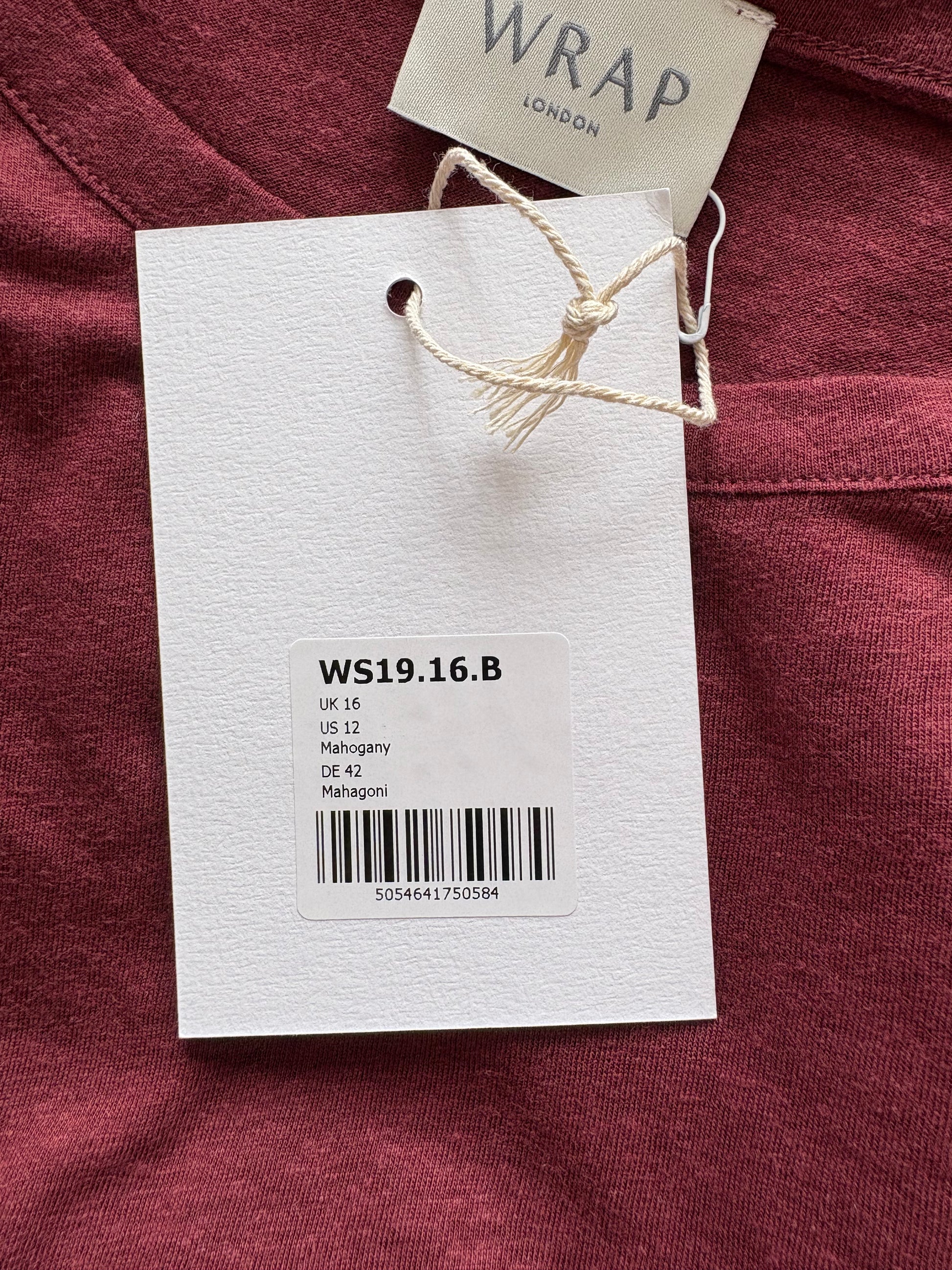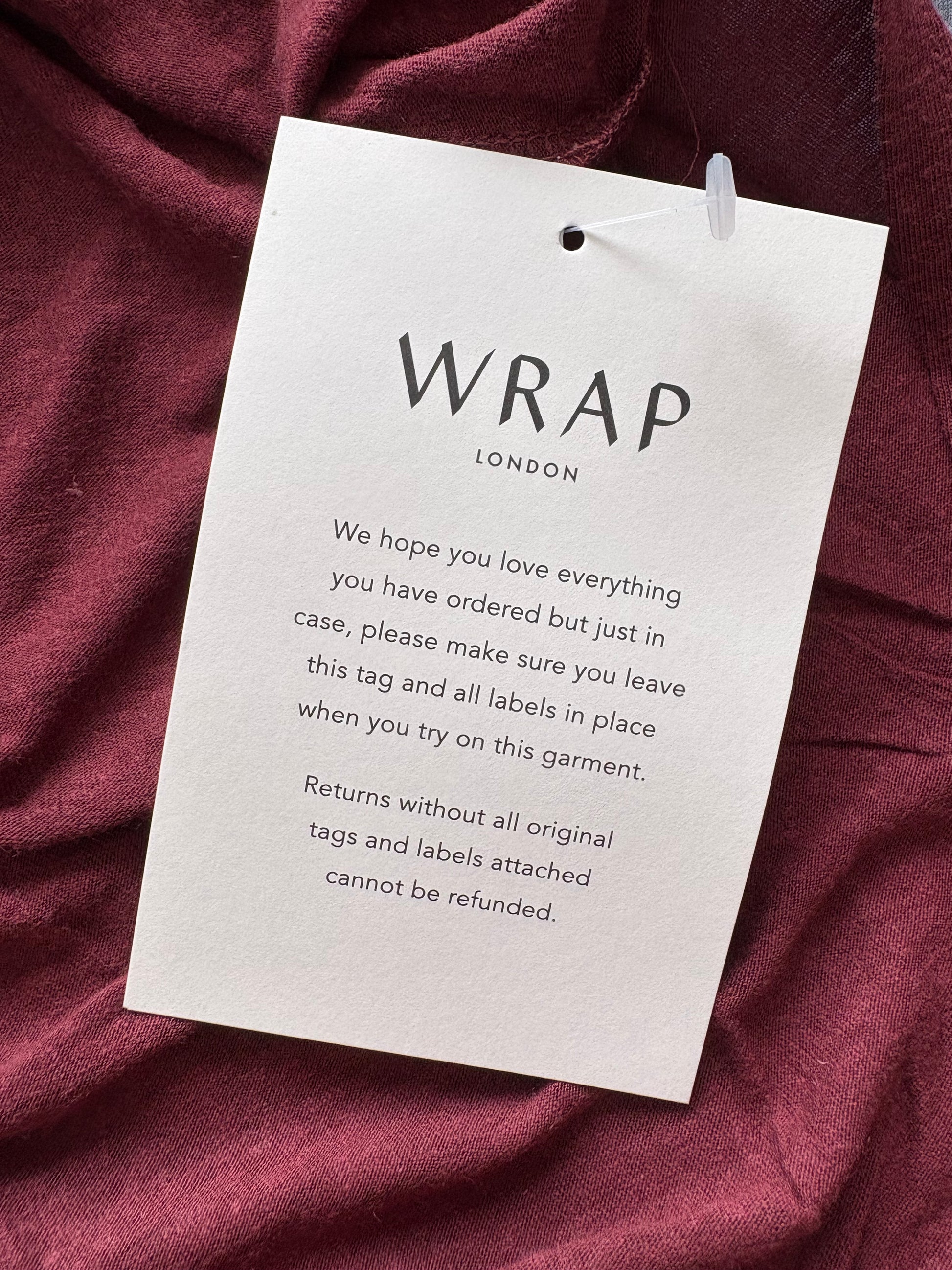 Wrap London Linen Blend Long Sleeve Top Colour Burgundy Size 16